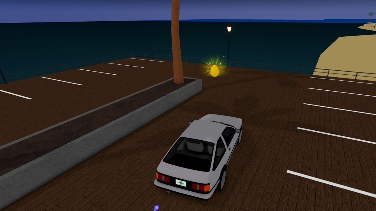 You can find the second egg in the parking lot, between the two buildings along the beach road. You can reach here while driving through the road beside the shoreline.