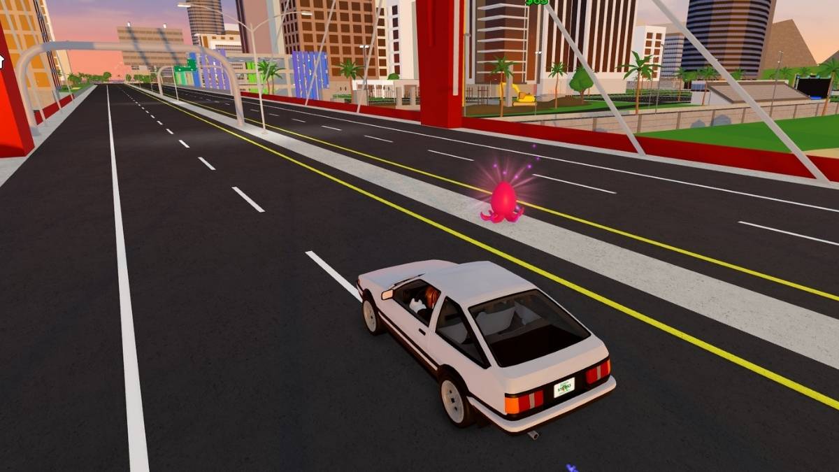 The forty-fifth egg is located on top of the bridge above the highway outside the city. You can access this bridge when driving downhill.