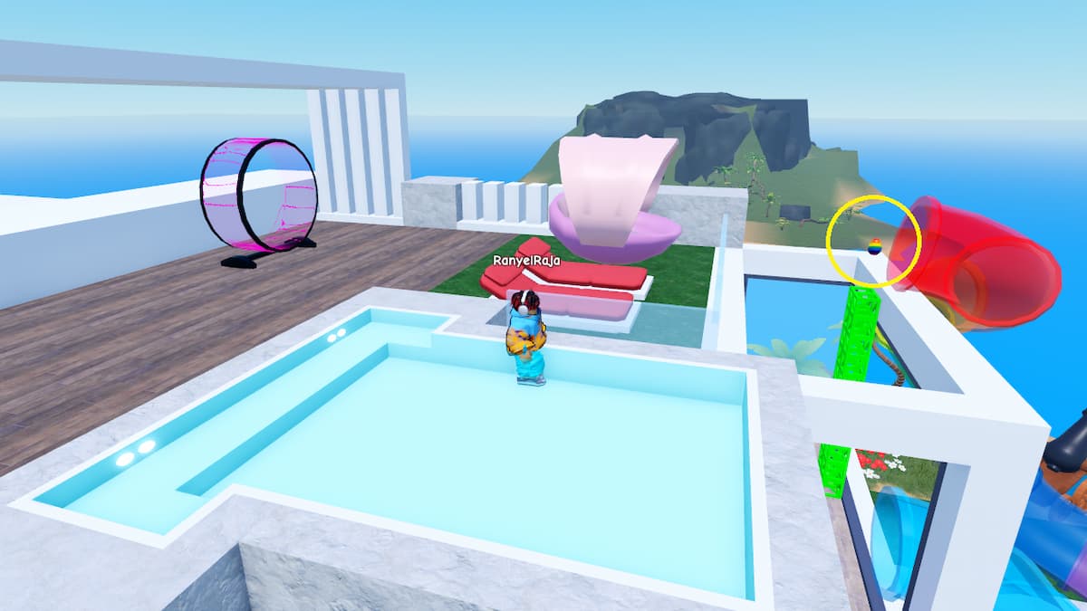 • For the third egg, you have to go to the topmost floor or terrace of the same bunny mansion building. Just go to the left side of the area to find a rainbow-colored egg near the entrance of the water ride that takes you from the terrace to the poolside.