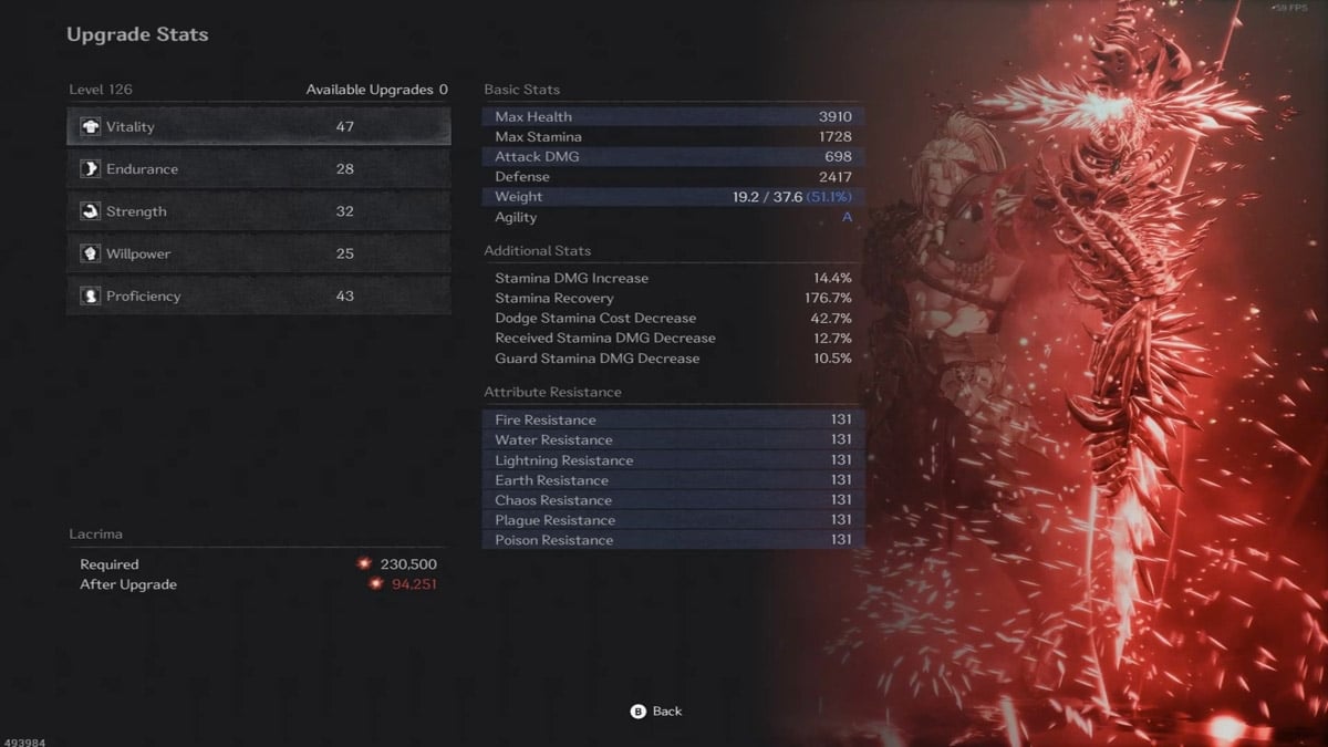 Khazan has five core stats to upgrade, but your precious Lacrima should go to Vitality and Willpower first. These two stats directly impact your survival and damage output - the most crucial factors in combat.